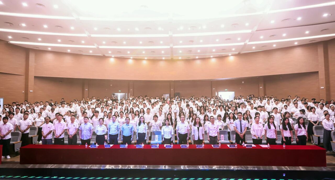 学院副书记胡苹,副院长查冬兰、欧阳林寒为三位新生代表佩戴校徽,全体新生共同宣读入学誓词,一起向学校许下遵循南航校训校风的庄严承诺。